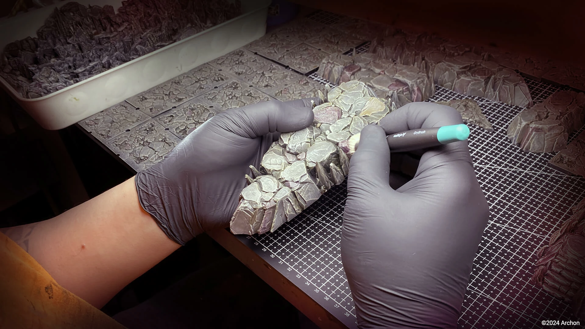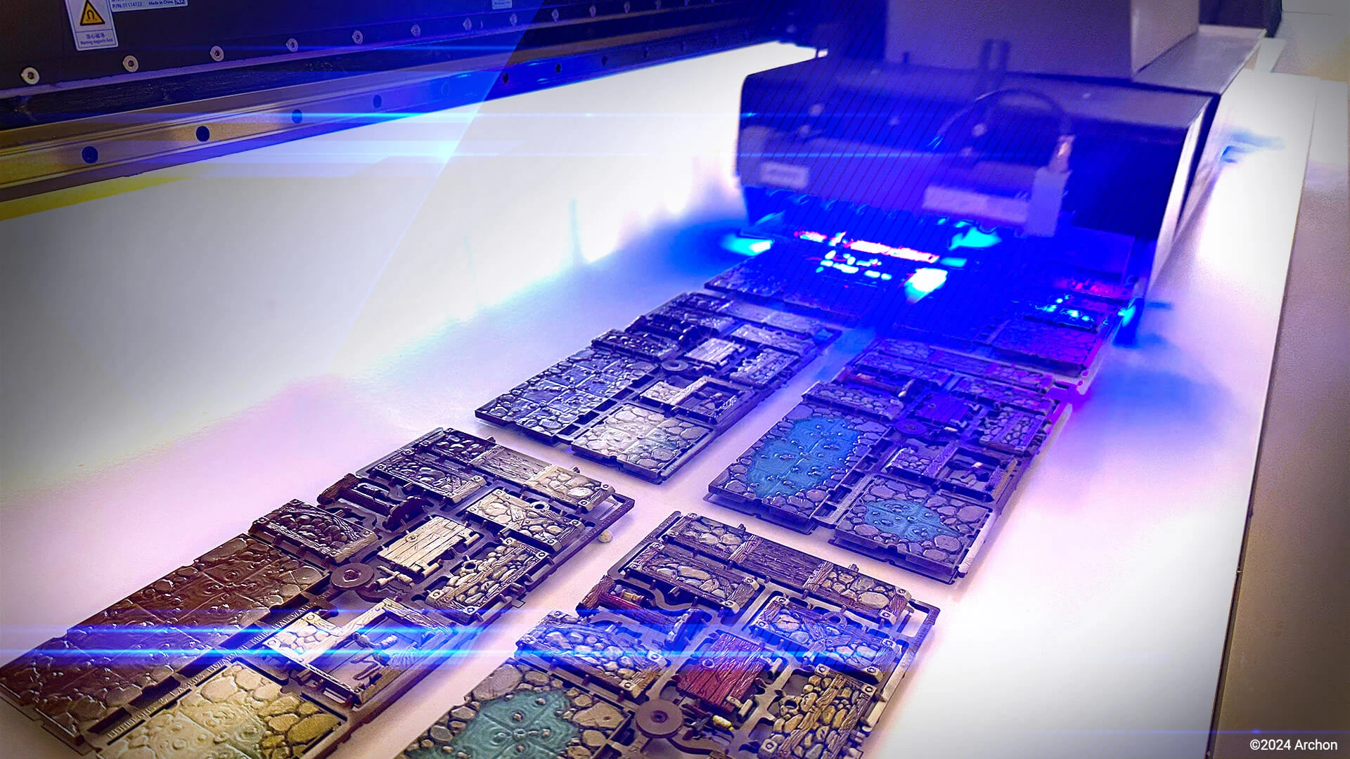 This process kicks off with a professional painter infusing their artistic touch into our unpainted terrain. After meticulously adding details, we use photogrammetry technology to scan the piece and apply the texture onto a 3D model. Our advanced design printing machine then adds a thin coat of UV paint, ensuring 100% authenticity and capturing effects that would take hours for the average painter to replicate.