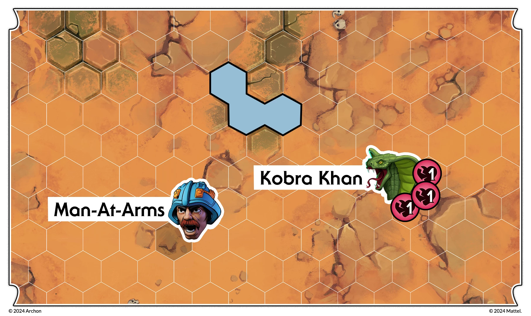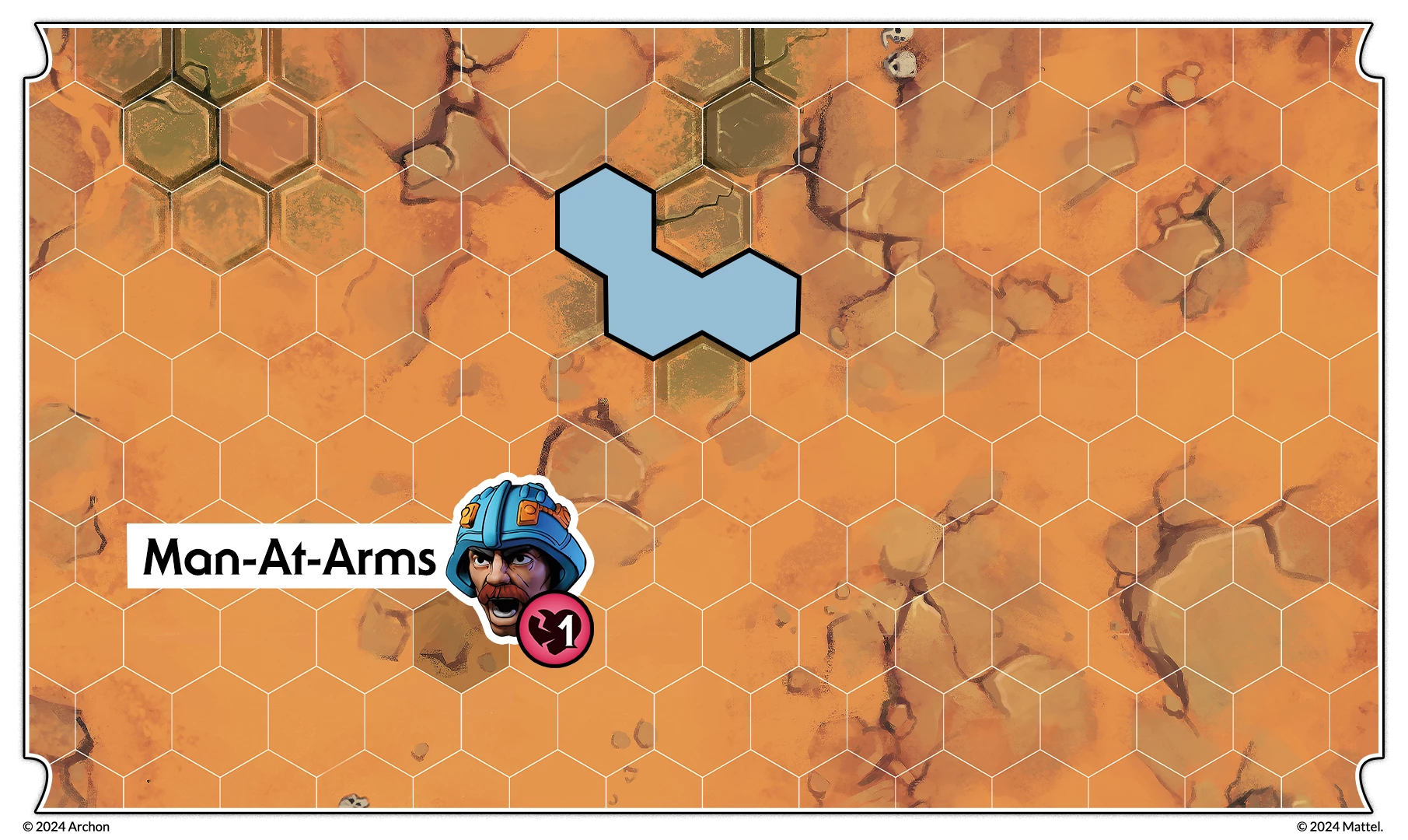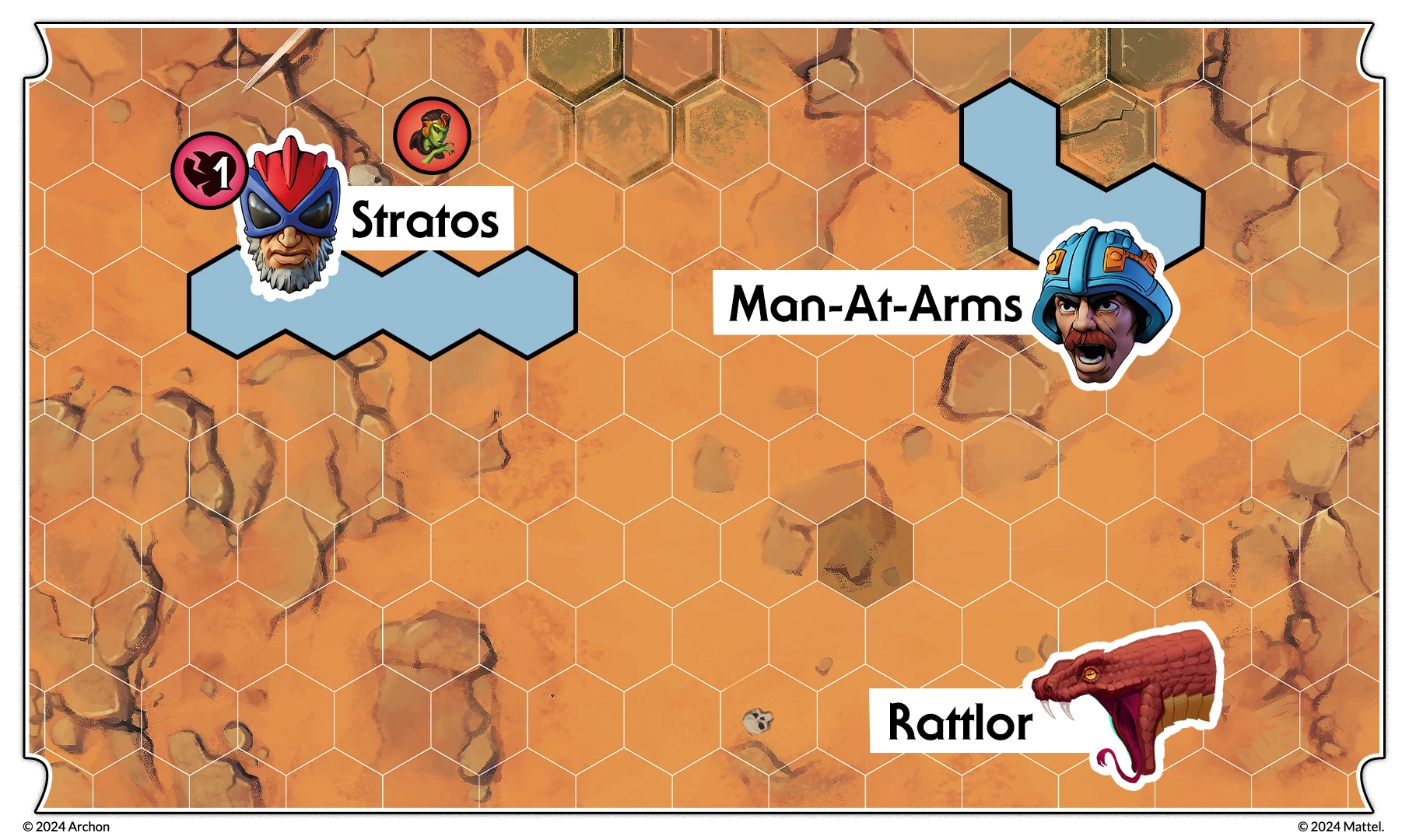 Sssqueeze strategically positions himself two hexes away from He-Man, attacking with his mace, forcefully pushing back the mightiest man in the universe. Now, he braces himself for the inevitable retaliation. Thankfully, Sssqueeze can regenerate focus, allowing him to capitalize on the power of the mace multiple times per round!