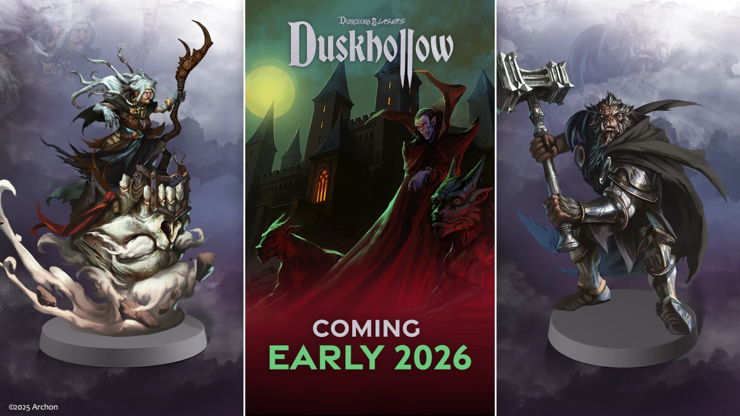 Slowly, the dark realm of Duskhollow spreads across more and more pages, and we thought this was the perfect moment to reveal our plans to you...After all, Halloween is the ideal time for things dark and dreadful. Duskhollow is a setting within the world of Deuslair, developed as part of our Dungeons & Lasers series. So, if your hearts fancy some dark fantasy, listen closely to the tale of a new adventure that will take you into a world of magic, deceit, and abominations, where death lurks around every corner and wails of despair fill the shadowy dungeons of the mighty lords of Duskhollow.