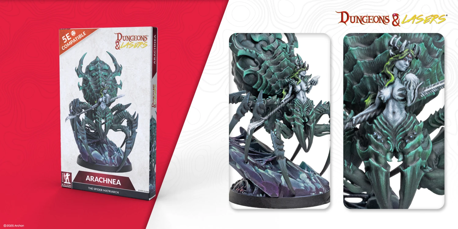 Arachnea, the beautiful yet deadly broodmother straight from your nightmares, rules at the heart of her endless webs. This detailed and dynamic miniature draws all the attention exactly where you want it.