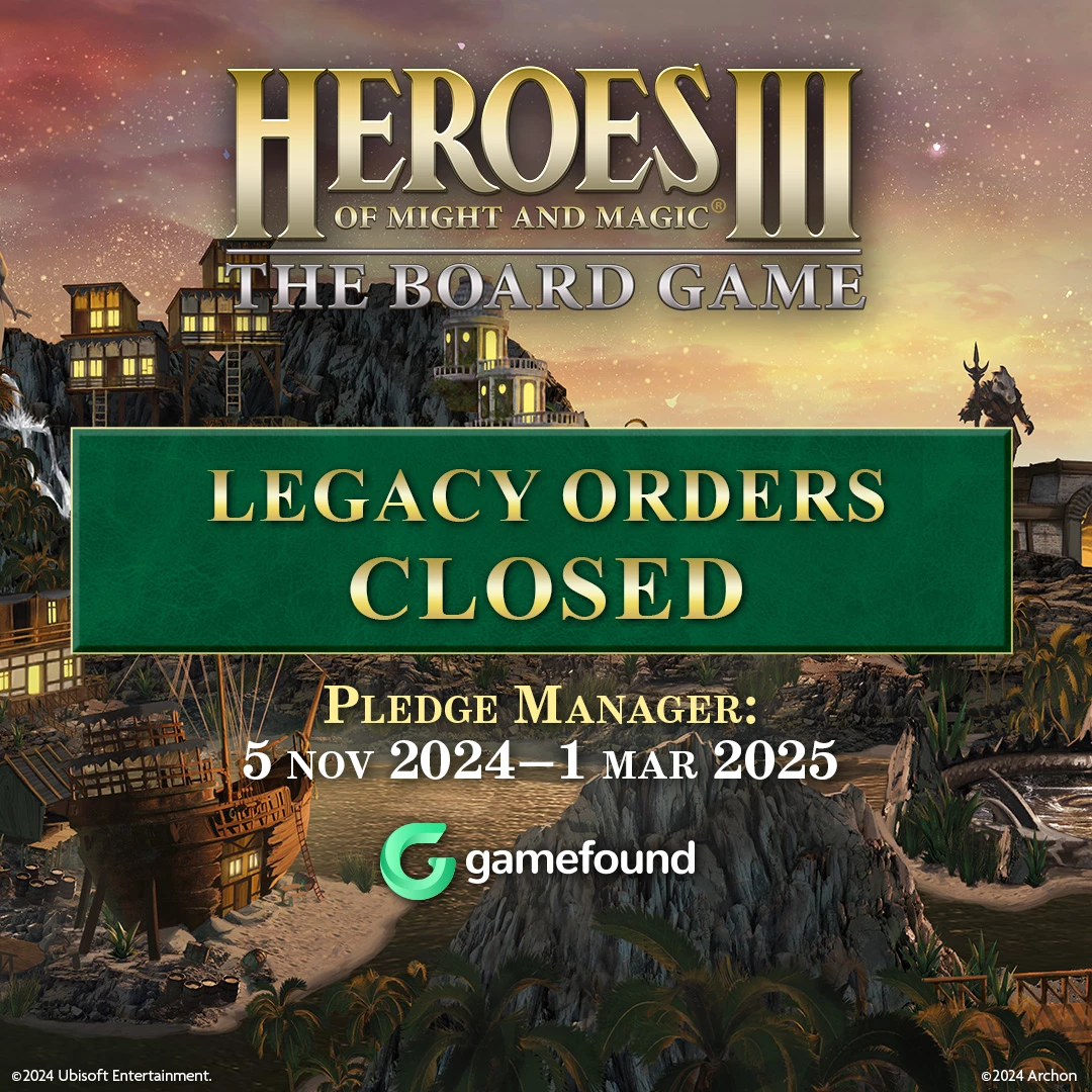 Hello, everyone! If you are still interested and want to acquire Heroes of Might & Magic III: The Board Game from the previous campaign faster, there are only a few hours left before we close the pledge manager for legacy orders.