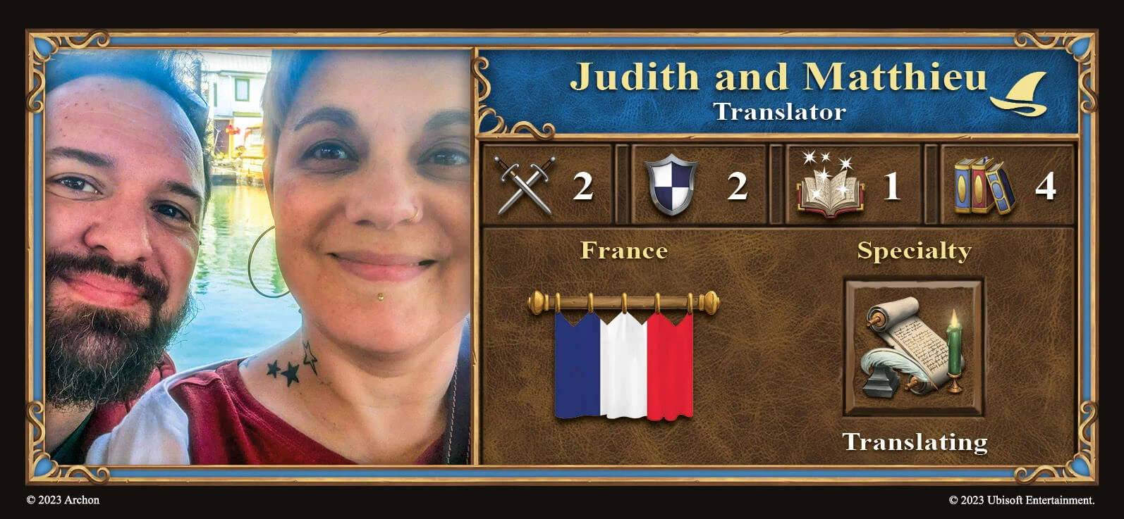 Besides the wording of all game concepts, one part we worked together on was localizing the Astrologers' Proclaim cards: they include a lot of fun pop culture easter eggs, some of which are totally unknown to the French-speaking players. So we took the time to do a bit of research and find silly French references where it was needed, in order to stick with the original intent of funniness. On espère que vous connaissez vos classiques ! ;)