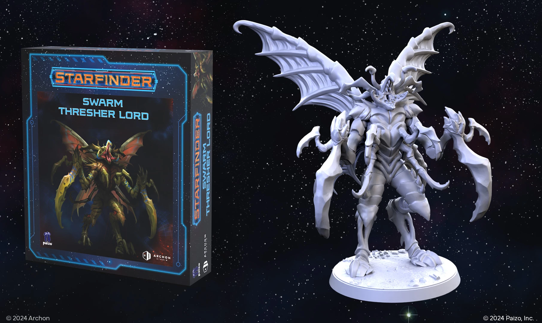 Journey with us now into the far-flung future of Starfinder, where the terrifying “Swarm Thresher Lord” comes buzzing into our store, slashing prices with his bladed arms as he does so . Along with this Indominus insect comes wave 10 of Starfinder minis, perfect for all galactic explorers.