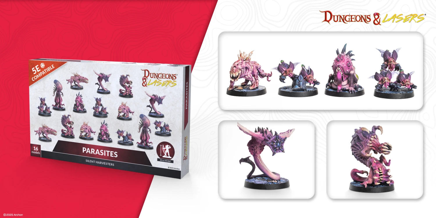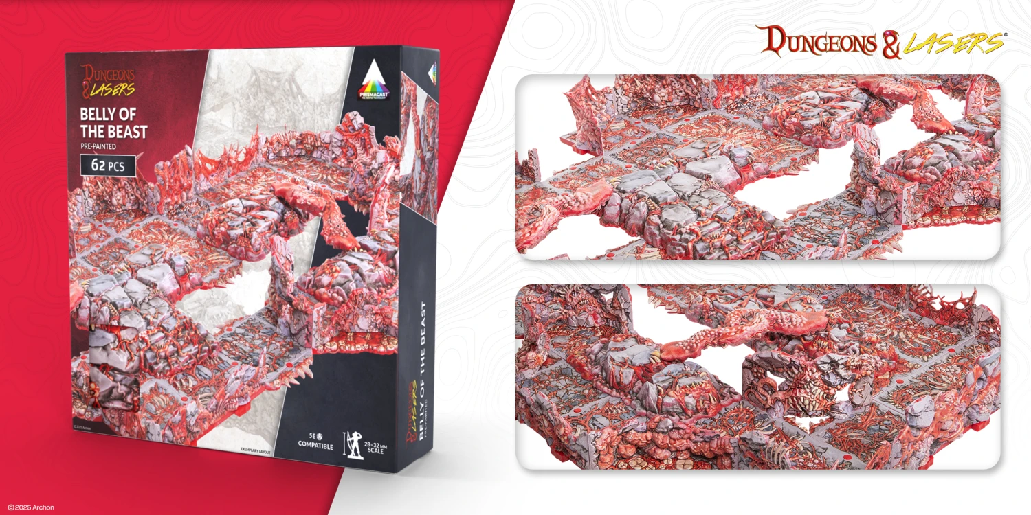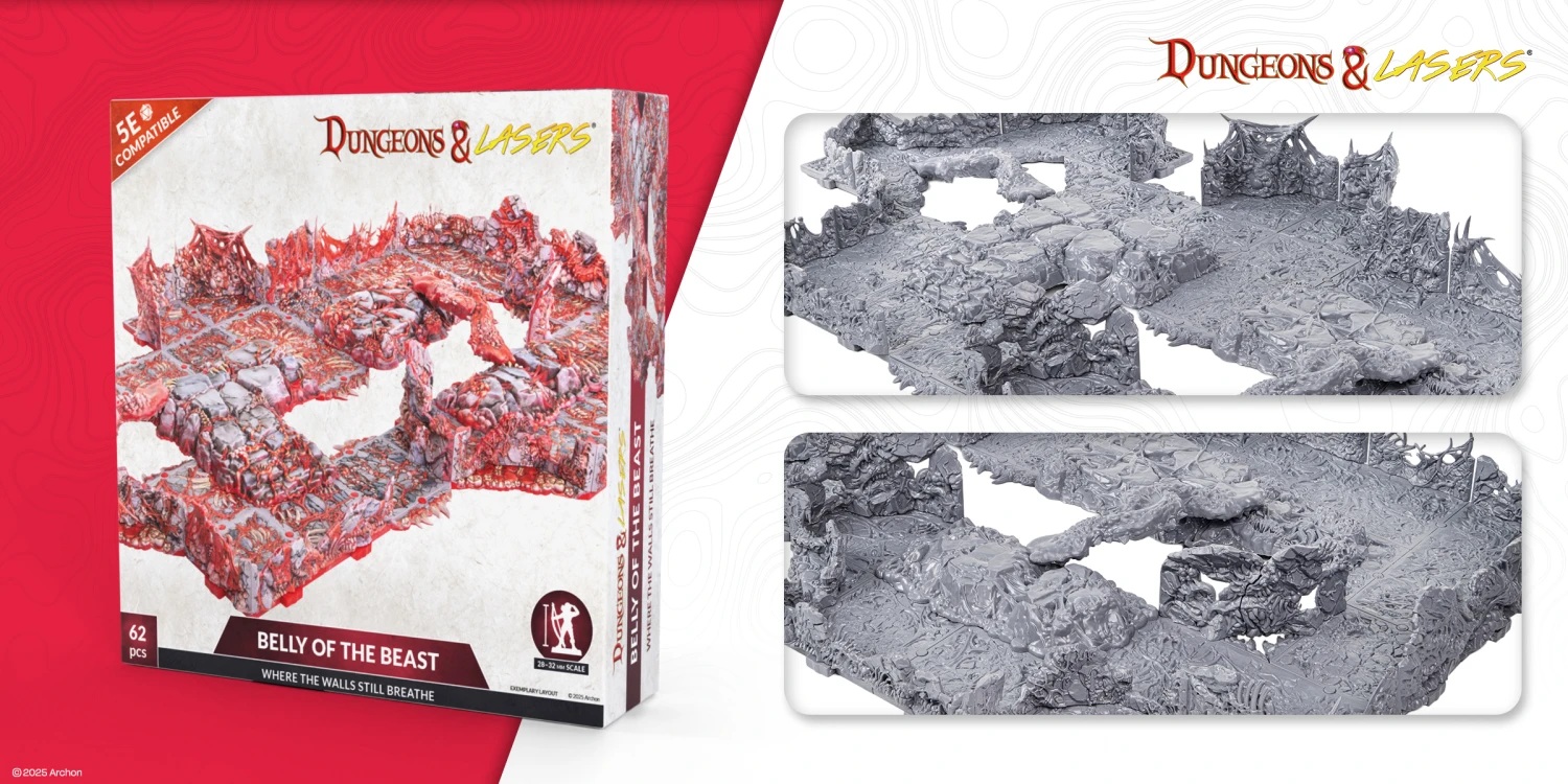 The first quarter of 2026 dives straight into darkness. You can expect exciting (and creepy) living, breathing dungeon interiors, nightmarish creatures that stalk forgotten realms, and some long-awaited surprises for both Dungeons & Lasers and Masters of the Universe: Battleground. We’re excited to present to you the Q1 retail releases - full with fresh terrain, terrifying miniatures, and long-awaited faction additions!